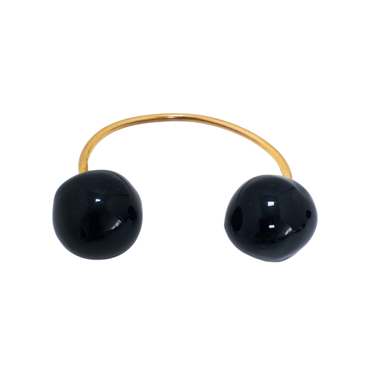 In addition to the gemstones, most pieces in this collection feature an asymmetrical bead crafted from gold foil and encased in resin. This subtle yet striking detail adds a touch of glamour and modernity to each design, enhancing its overall allure.