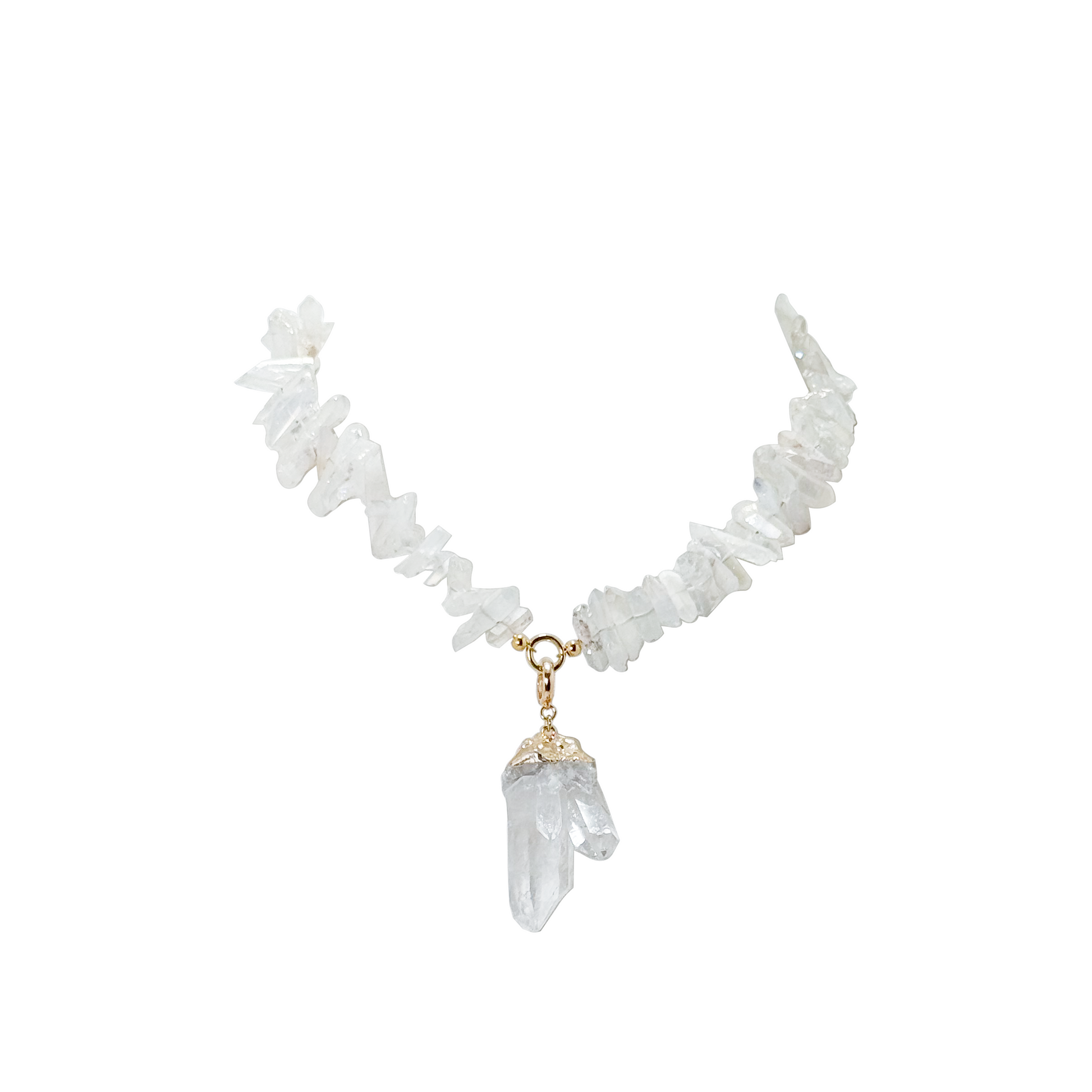 This necklace is crafted entirely from small quartz points, creating a striking and elegant look. Quartz is known for its clarity and energy amplification, making this necklace not only beautiful but also meaningful.